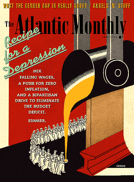 Contributors -- July 1996 Brian Cronin ("Cover Art"), is an illustrator who lives in New York City. His work has appeared in Time, The New York Times, and The New Yorker. Francis Davis ("Like Young"), a contributing editor of The Atlantic, is the author of The History of the Blues (1995) and Bebop and Nothingness (1996), a collection of essays. Deborah Fallows ("Buffed and Polished"), has written for National Geographic, The Washington Monthly, and The Los Angeles Times Magazine. Mary Graham ("High Resolution, Unresolved"), is a lawyer and writer who lives in Washington, D.C. Brad Holland ("Express Yourself: It's Later Than You Think"), an artist, has received gold medals from the Art Directors Club of New York and the Society of Publication Designers. His article in this issue appears in somewhat different form in the book Illustration America, to be published this month by Rockport Press. Wendy Kaminer ("The Latest Fashion in Irrationality"), is a contributing editor of The Atlantic and a public-policy fellow at Radcliffe College. Her essay collection True Love Waits was published last spring. Carol Kino ("Living-Room Galleries"), is a former New York correspondent for the British quarterly Modern Painters. She has written about art for The New York Times, Artnews, and Art & Auction. Hans Koning ("Germania Irredenta"), is at work on a novel, Night and Day, to be published next year. Robert A. Levine ("The Economic Consequences of Mr. Clinton"), a senior economist emeritus at the Rand Corporation, was deputy director of the Congressional Budget Office from 1975 to 1979. Thomas Lux ("He Has Lived in Many Houses"), teaches writing at Sarah Lawrence College and is the author of Split Horizon (1994). Florence Cassen Mayers ("All-American Sestina"), is a poet whose work has appeared in The Paris Review, Epoch, and Poetry. Thomas I. Palley ("The Forces Making for an Economic Collapse"), teaches economics at the New School for Social Research, in New York City. He is the author of Post Keynesian Macroeconomics, to be published this year. Richard Rubin ("Welcome to Our Tomb"), has recently been published in The New Yorker, the Oxford American, and The Southern Review. Steven Stark ("Gap Politics"), writes about politics and popular culture and is a commentator on National Public Radio. Charles Thompson ("Robert Penn McInerney"), is the fiction and book editor of American Way magazine. He has written for Spy, Mademoiselle, and The Oregonian. Mark Walters ("Spring"), teaches literature and creative writing at William Jewell College, in Liberty, Missouri.
