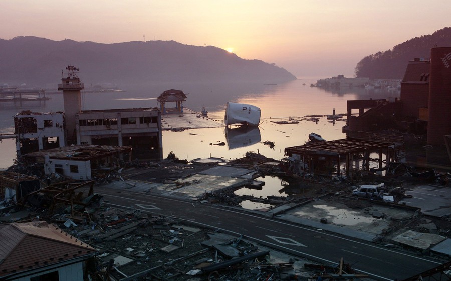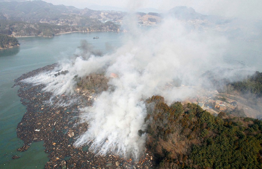 Search and rescue teams arriving in Japan's hardest hit areas are so far finding very few survivors, after last week's devastating earthquake. The official number of deaths has climbed above 1,800, but officials fear the eventual number may exceed 10,000, as thousands of bodies are now being discovered on remote beaches. In the days since the earthquake, Japan has experienced an additional 403 aftershocks -- 32 of them with a magnitude greater than 6.0. Fire crews, rescue teams, and volunteers are now digging through the wreckage left by the tsunami, as evacuation efforts continue around the Fukushima Daiichi Nuclear Power Station and engineers work to regain control of the failing reactors. [Be sure to see earlier entries from When the Quake Struck and Scenes from the Aftermath]