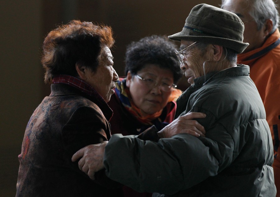 Read moreA mother tries to talk to her daughter who has been isolated for signs of radiation after evacuating from the vicinity of Fukushima\'s nuclear plants, at a makeshift facility to screen, cleanse and isolate people with high radiation levels in Nihonmatsu, northern Japan, March 14, 2011. #