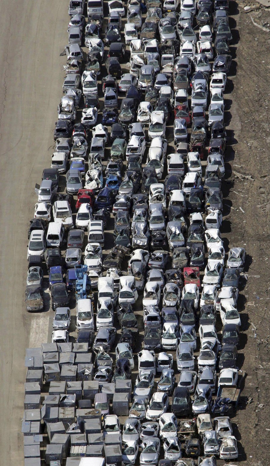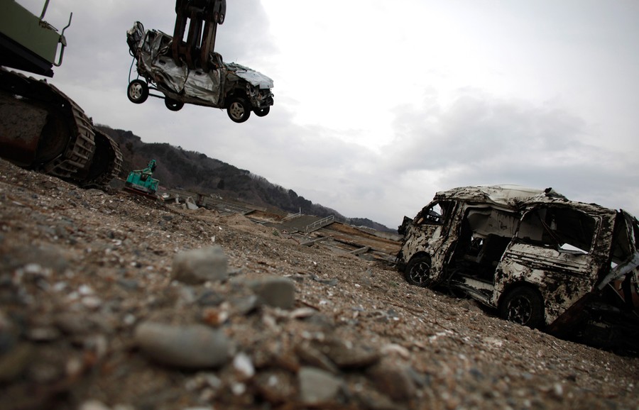 Read moreDestroyed vehicles are placed next to a runway, for disposal at Sendai airport, northeastern Japan on Thursday, March 24, 2011, following the March 11 earthquake and resulting tsunami. #