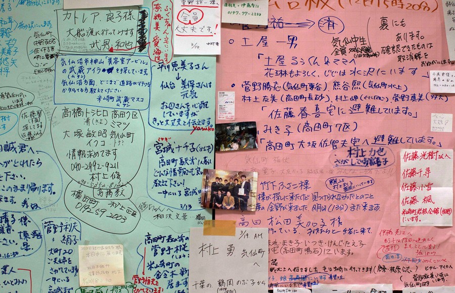 Read moreNotes left behind by Japanese evacuees looking for loved ones inside a shelter in the earthquake and tsunami-destroyed town of Rikuzentakata, Japan on Monday, March 21, 2011. #
