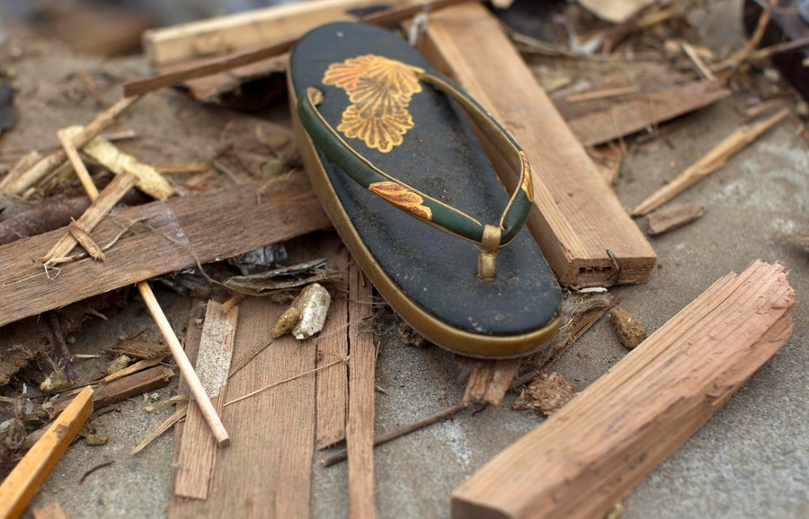 Read moreA traditional Japanese sandal, worn with formal kimono dress, lies in the rubble in the earthquake and tsunami destroyed town of Onagawa, Miyagi Prefecture, Japan on Sunday, March 20, 2011. #