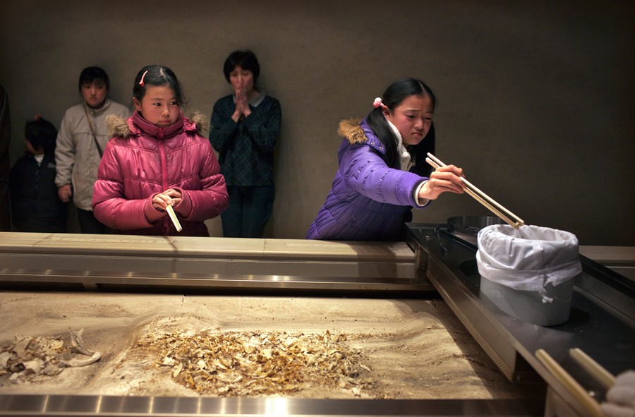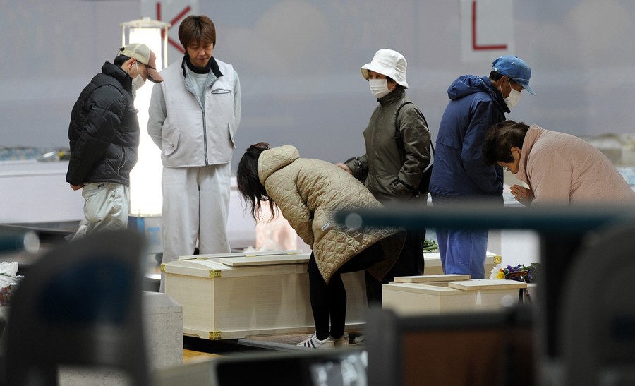 Read moreFamily members and relatives transfer the bones of Masaichi Oyama, who was killed by the tsunami, by chopsticks into an urn the during a cremation ceremony March 24, 2011 in Kurihara , Japan. The family lost three family members from the earthquake and tsunami. Under Japanese Buddhist practice, a cremation is the expected traditional way of dealing with the dead, but now with the death toll so high, crematoriums are overwhelmed and there is a shortage of fuel to burn them. Local municipalities are forced to dig mass graves as a temporary solution. #