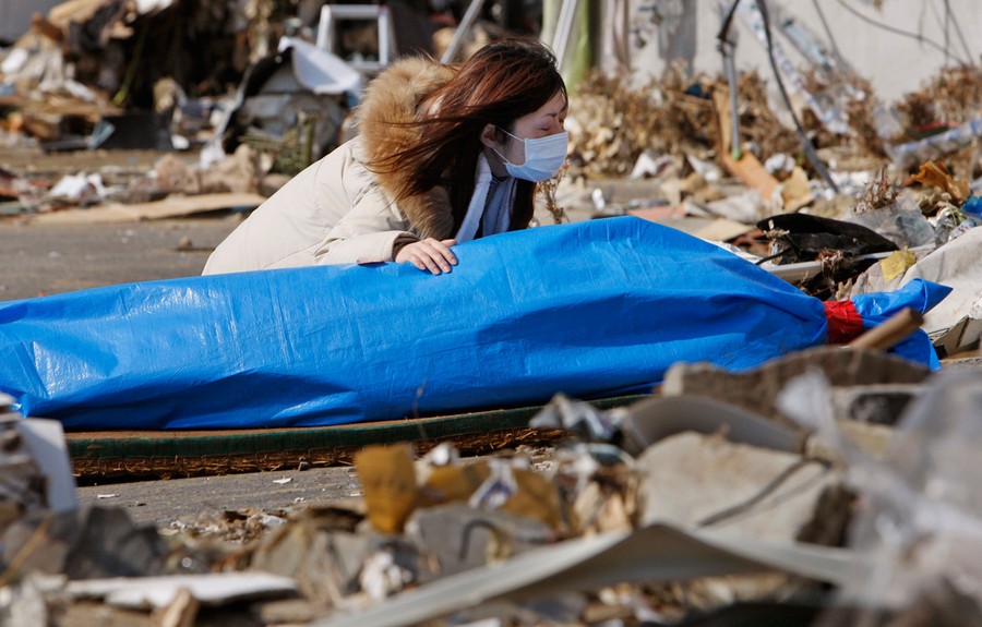 Read moreTayo Kitamura, 40, touches the covered body of her mother, Kuniko Kitamura, 69, after Japanese firemen discovered the dead woman inside the ruins of her home in Onagawa, northeastern Japan, Saturday, March 19, 2011, following the last week's earthquake and tsunami. #