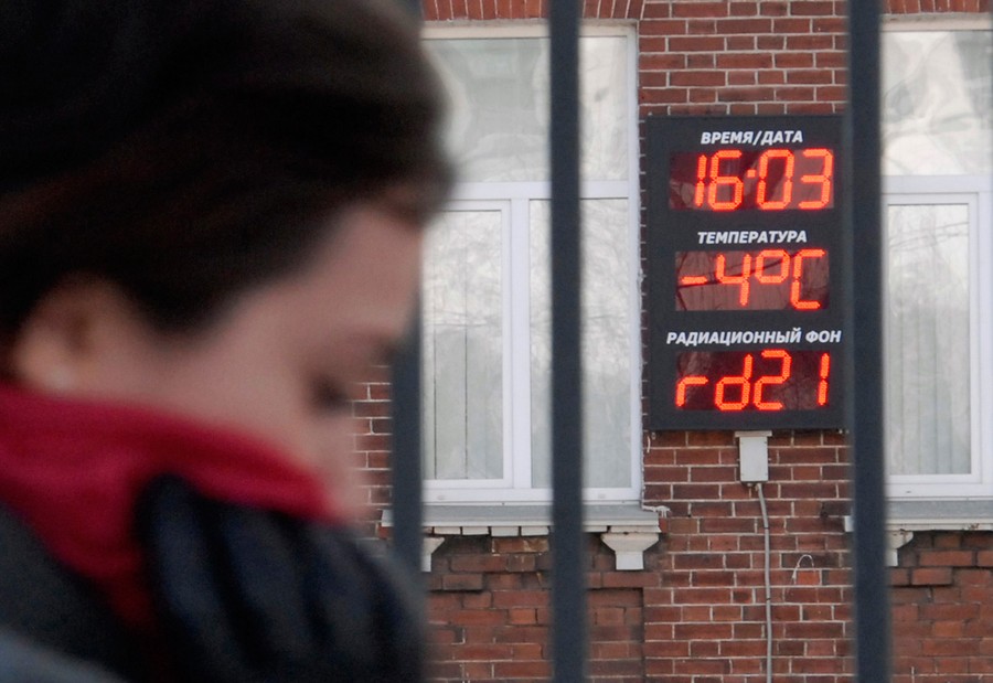 Read moreA woman passes by a sign on a fire station, displaying the local time, temperature and radioactivity level data, in Russia's far eastern city of Vladivostok on March 16, 2011. #