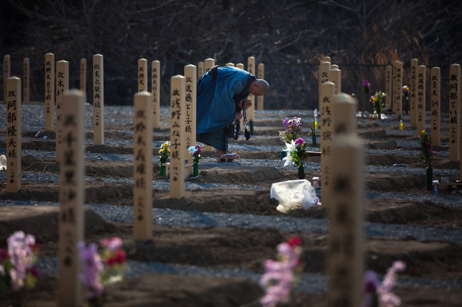 Read moreA Buddhist monk prays for tsunami victims buried due to the lack of crematoriums in the town of Onagawa in Miyagi prefecture on April 13, 2011. Japanese usually cremate their dead, but the normal system has been unable to cope with the impact of the March 11 earthquake and tsunami that killed thousands. #