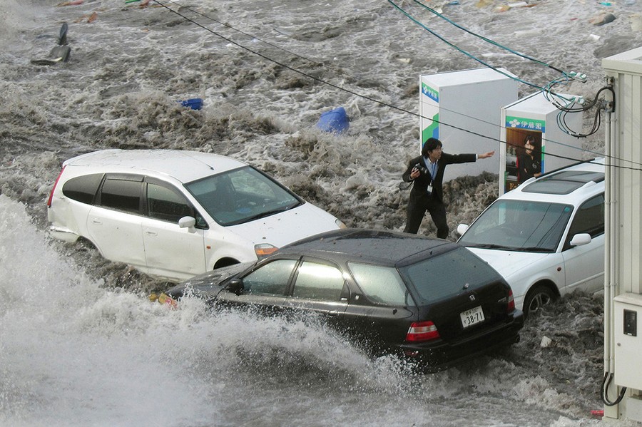 Read more(3 of 3) Reporter Toya Chiba is swept up by a tsunami at Kamaishi port, Iwate prefecture on March 11, 2011. Chiba managed to survive the tsunami by grabbing a dangling rope and climbing onto a coal heap, Kyodo news reports. #