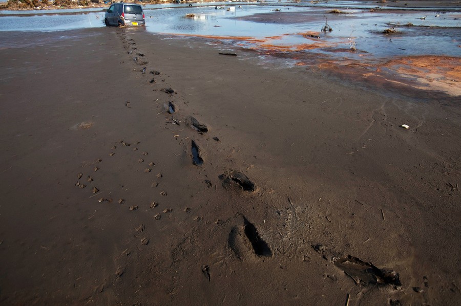 Read moreFootsteps lead away from an abandoned vehicle in the Odaka area of Minamisoma, inside the deserted evacuation zone around the Fukushima Daiichi nuclear power plant on April 7, 2011. #