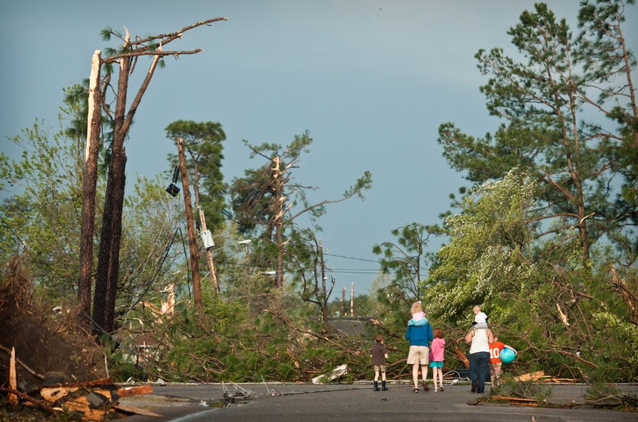 Read morePeople walk through a neighborhood to assess the damage after a tornado ripped through the Cottonade neighborhood on Saturday, April 16, 2011 near Fort Bragg, North Carolina. #