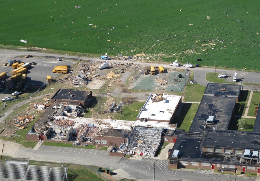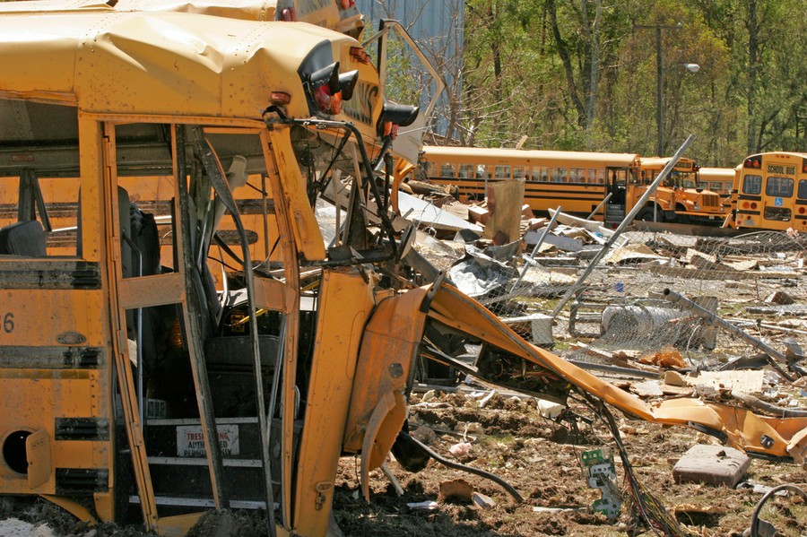 Read moreDestroyed school buses sit among the rubble at Page Middle School, April 17, 2011 in Gloucester, Virginia. A tornado that barreled across Gloucester Saturday evening cut a mile-wide swath of destruction about 7 1/2 miles long from Coke to the Mathews County line, leaving three residents dead and more than 60 injured, said Sheriff Steve Gentry. #