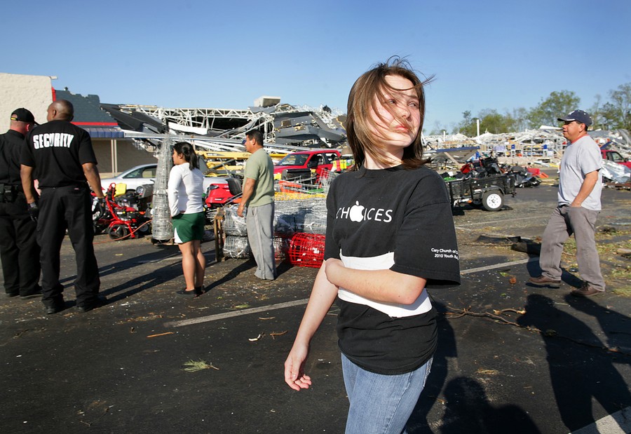 Read moreHannah Rosser, 13, who suffered bruising to her ribs the previous day when a tornado hit Lowe's hardware store in Sanford, North Carolina, walks through the Lowe's parking lot on Sunday, April 17, 2011. #
