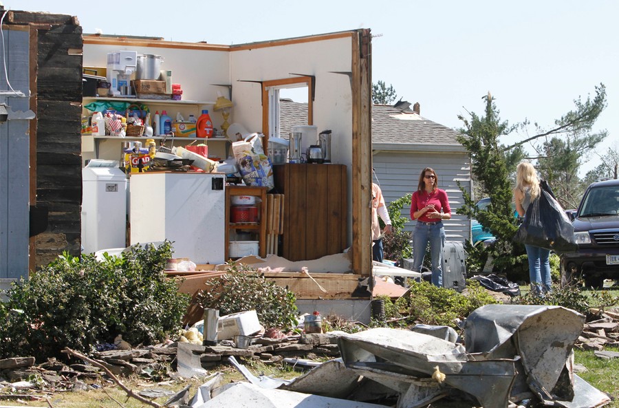 Read moreAllison Cougill, center, helps sort through debris of her river cottage after a tornado swept through the area Saturday night in Deltaville, Virginia, Sunday, April 17, 2011. #