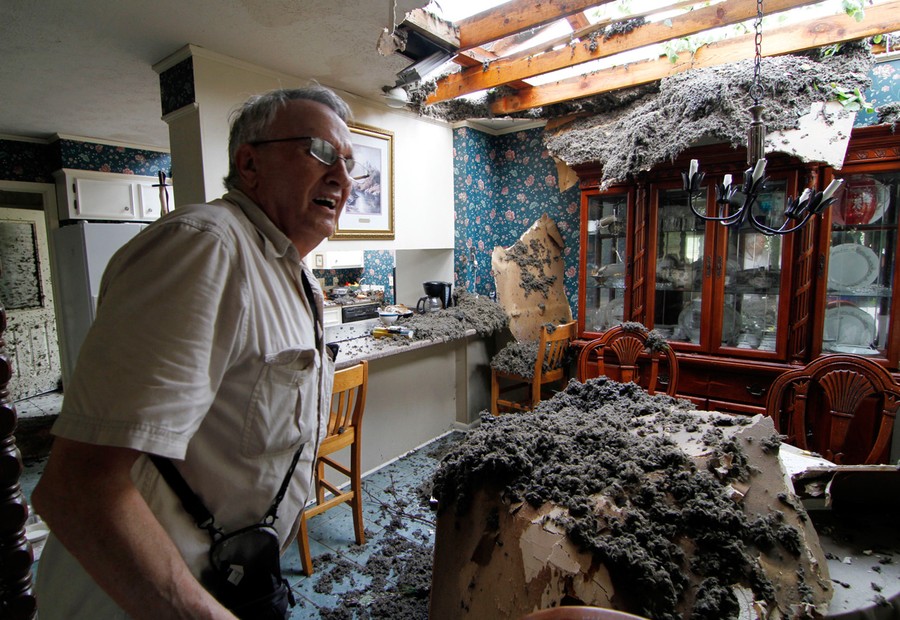 Read moreBill Mosley shouts in surprise after seeing the china mostly intact in the cabinet in what remains of his dining room after a tornado passed through his Clinton, Mississippi neighborhood, Friday, April 15, 2011. #