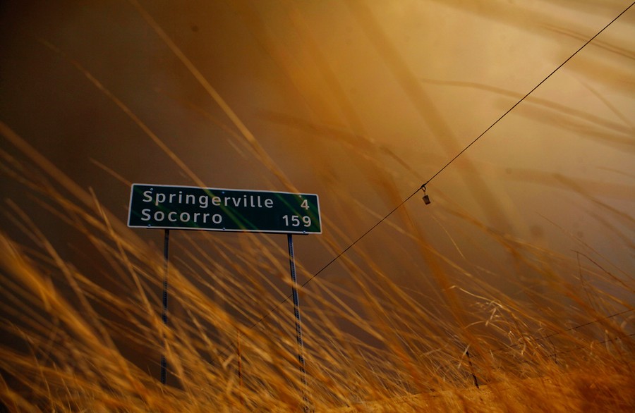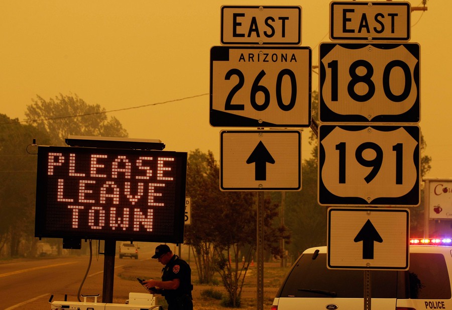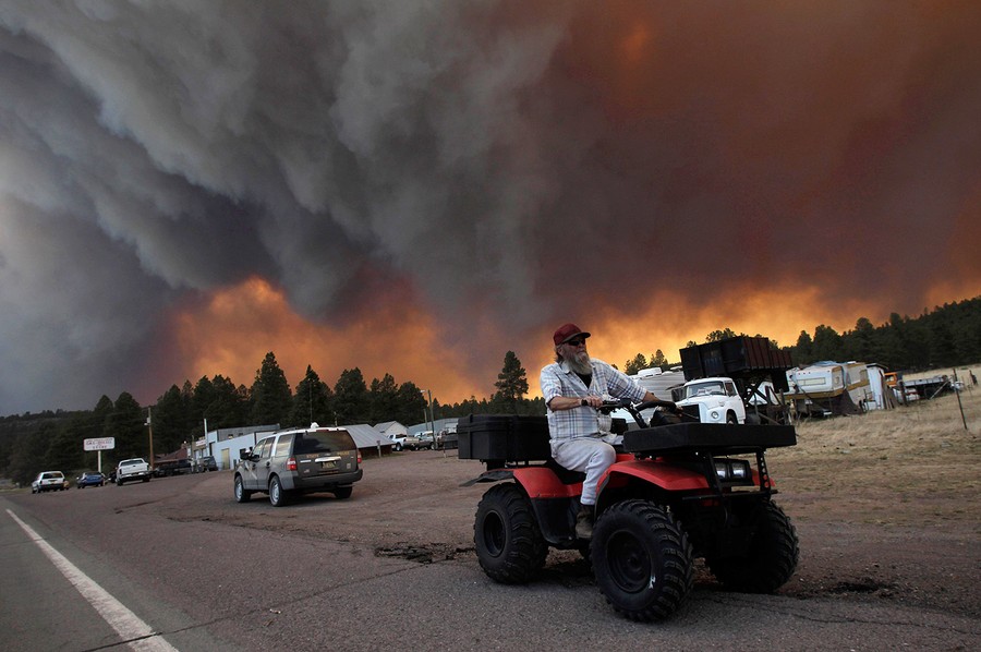 A wildfire believed to have been sparked by inattentive campers continues to burn, largely out of control, for its 12th day in eastern Arizona. The Wallow Fire now ranks as the state's second largest wildfire on record -- it has already left 600 square miles of pine forest blackened near the New Mexico border and driven thousands of residents from their homes. Although more than 2,000 firefighters are working to control the blaze, it still is classified as "zero percent contained" and currently threatens large power lines that supply electricity to three states. These images show some of the scenes taking place around eastern Arizona as residents and firefighters cope with the disaster.