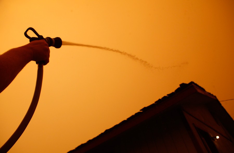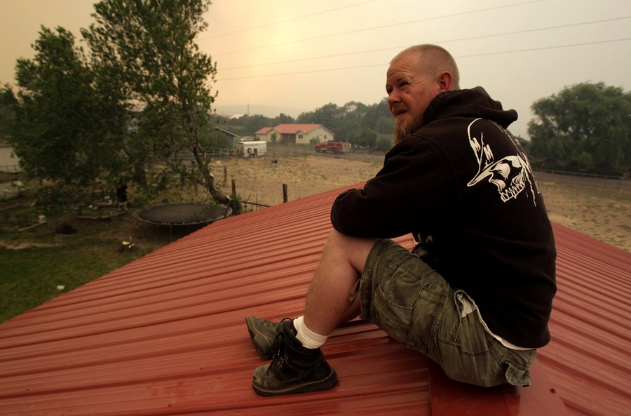 Read moreBrett Wilkins sprays down the roof of his home as smoke from the Wallow fire fills the sky on June 8, 2011 in Springerville, Arizona. Smoke loomed over the twin towns of Eager and Springerville, home to about 7,000 people north of the fire. #