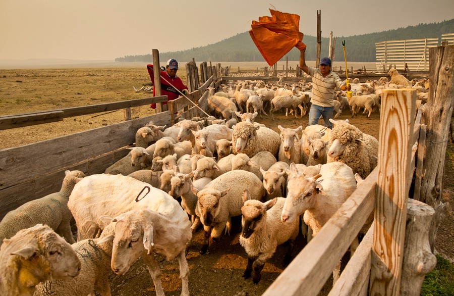 Read moreAbel Sandoval, center, drives sheep through the pens at the Sheep Springs Sheep Co. summer shearing camp northwest of Greer, Arizona, ob June 5, 201. Mark Pedersen, of Sheep Springs Sheep Co., said they drove about 2,000 sheep from Chandler up to their summer pastures near Greer. Pedersen said they were prepared to move both the cattle and the sheep if they had to. He said the biggest problem with the smoke was that it bothered the sheeps' lungs much the same way it bother people's lungs. #