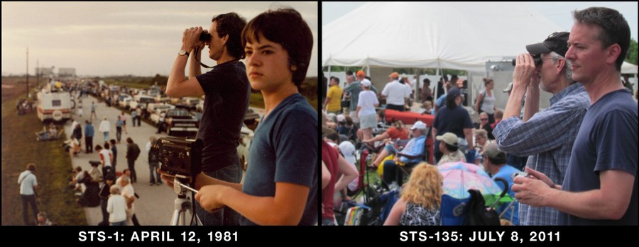 Read moreChris Bray and his father were able to attend the very first Space Shuttle launch in 1981 (left), when he was 13 years old. Some thirty years later, the two were able to attend the final launch as well, and recreated the original image. Bray uploaded this pair of photos to Flickr last week, and it quickly went viral, touching the hearts of thousands around the world. Original here. #