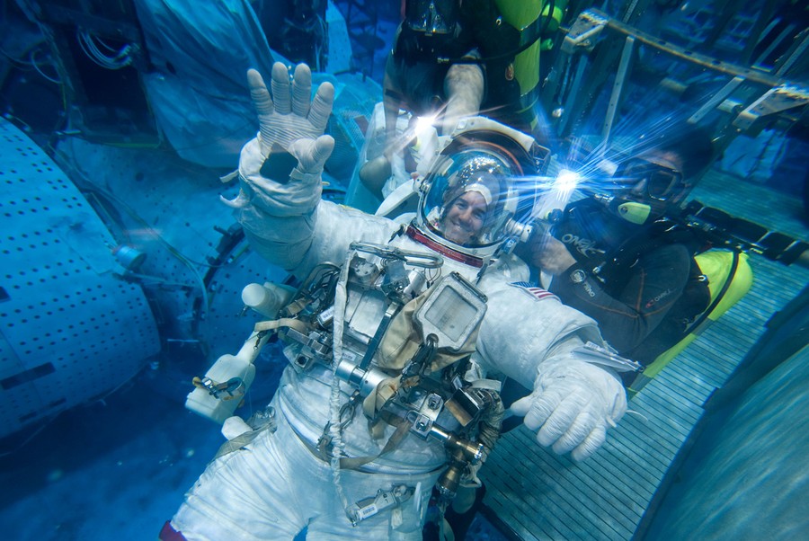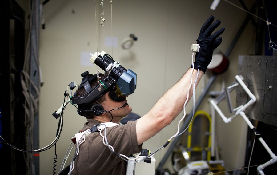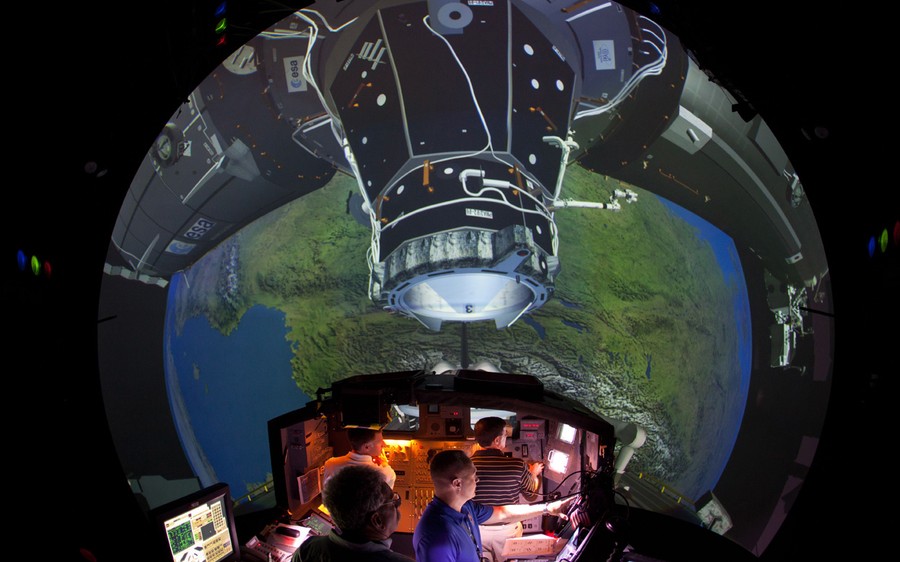 Read moreNASA astronaut Rex Walheim, STS-135 mission specialist, simulates a space walk in the Virtual Reality Laboratory at the Johnson Space Center on Friday, May 13, 2011, in Houston. #