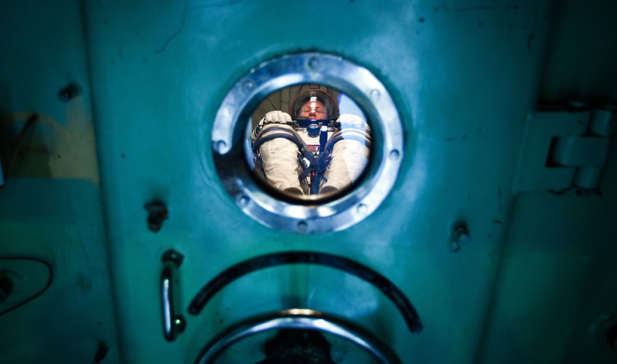 Read moreNASA astronaut Doug Hurley waits in a pressure chamber before a test of his Sokol space suit at the Zvezda facility on Wednesday, March 30, 2011, in Moscow. The crew of the final shuttle mission traveled to Moscow for a suit fit check of their Russian Soyuz suits that will be required in the event of an emergency. #