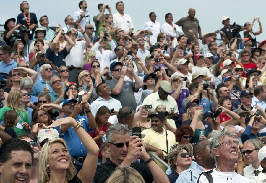 Read moreAt the Banana River Creek VIP viewing area at NASA's Kennedy Space Center in Florida, spectators smile with delight as they watch space shuttle Atlantis soar into space on its STS-135 mission to the International Space Station. #