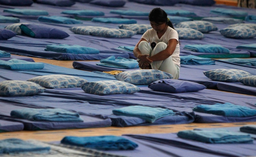 Read moreA woman rests on a mattress after she was evacuated from an area affected by the floods at the collective shelter at Sports Science Center in Bangkok, on October 26, 2011. #
