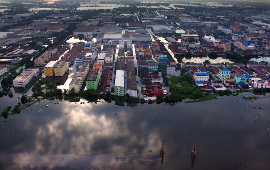 Read moreFlood waters surround an industrial complex in Bangkok, Thailand, on October 20, 2011. Hundreds of factories closed in the central Thai province of Ayutthaya and Nonthaburi with flood waters reaching Bangkok. #