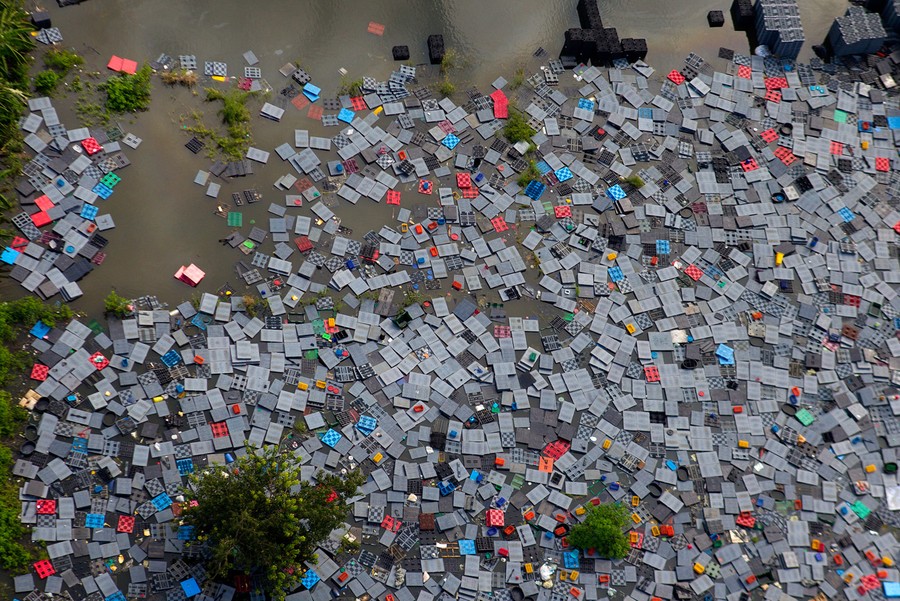Read moreResidents staying in concrete blocks, meant to be used in the construction of an elevated train system, pass the time in a flooded area on the outskirts of Bangkok, on November 11, 2011. #
