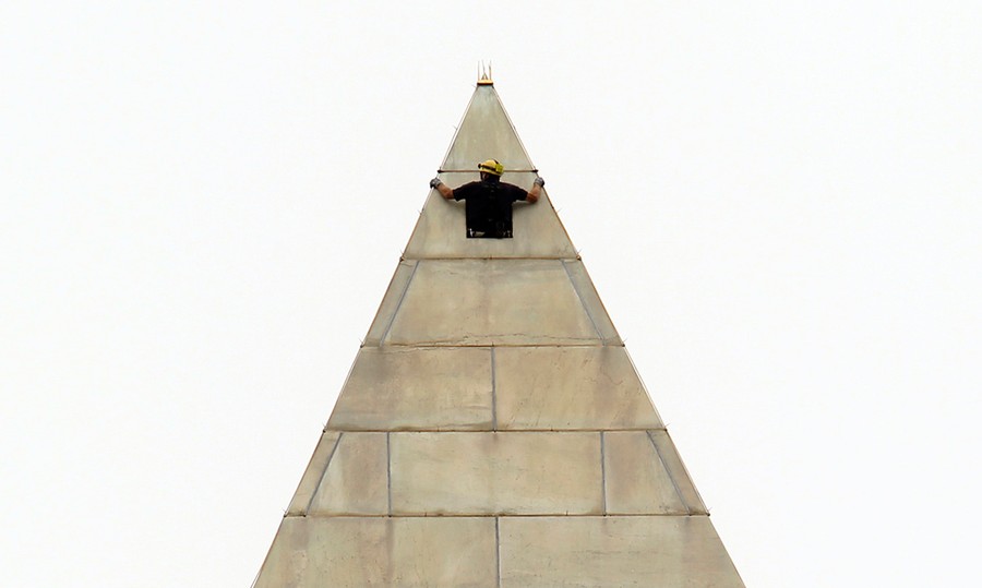 Read moreA worker prepares rappelling lines at the top of the Washington Monument as inspections to the structure begin on September 27, 2011. Engineers planned to rappel down the 555-foot (170-meter) Washington Monument to assess damage from a rare 5.8-magnitude earthquake and storms that struck the U.S. capital in August. #
