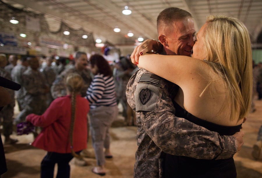 Read moreA couple embraces as soldiers of the 25th Infantry Division are greeted by family, friends and loved ones at their redeployment ceremony at Wheeler Gulch, Wheeler Army Airfield in Wahiawa, Hawaii, on December 6, 2011. U.S. forces are withdrawing from Iraq after an eight year presence in the country and communities in Hawaii are welcoming soldiers home. #