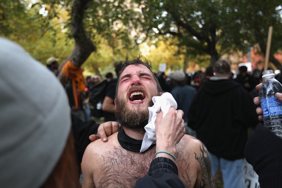 Read moreA protester's face is cleaned after he was pepper-sprayed by police at the Occupy Denver camp on October 29, 2011 in Denver, Colorado. Following a march by protesters, police tried to tear down some newly-erected tents at the encampment and and a melee ensued. Police detained about a half dozen people and pepper-sprayed others before calling for reinforcements. #