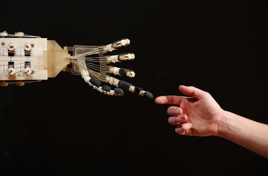 Read moreRobotics student Gildo Andreoni interacts with a Dexmart robotic hand built at the University of Bologna in the Robotville exhibition at the Science Museum on November 29, 2011, in London, England. #