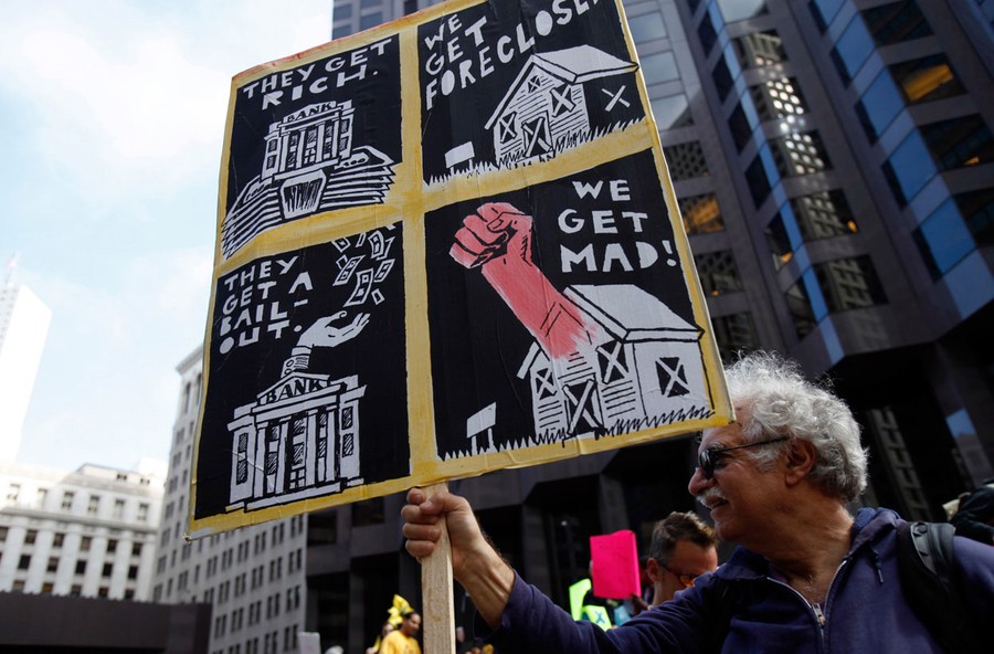 Read moreIn San Francisco, Nick Galloro, of Berkeley, holds a sign during a rally against banking institutions as part of the Occupy Wall Street campaign in California, on September 29, 2011. #