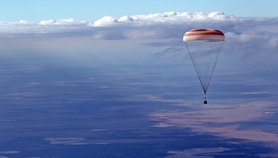 Read moreA Russian Soyuz TMA-21 space capsule descends about 150 km south-east of the Kazakh town of Dzhezkazgan, Kazakhstan, on September 16, 2011. NASA Astronaut Ron Garan and Russian Cosmonauts Andrey Borisenko and Alexander Samokutyayev returned from more than five months onboard the International Space Station, where they served as members of the Expedition 27 and 28 crews. As the Space Shuttle program was shut down earlier in the year, NASA astronauts will now have to rely on Russian rockets to ferry them into orbit, until a new manned U.S. space program is ready, possibly by 2019. #