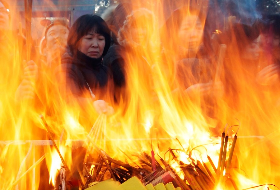 Read moreA Chinese woman lights joss sticks to pray for prosperity and well being on the first day of the "Year of the Dragon", at the Dongyue Temple in Beijing, on January 23, 2012. #