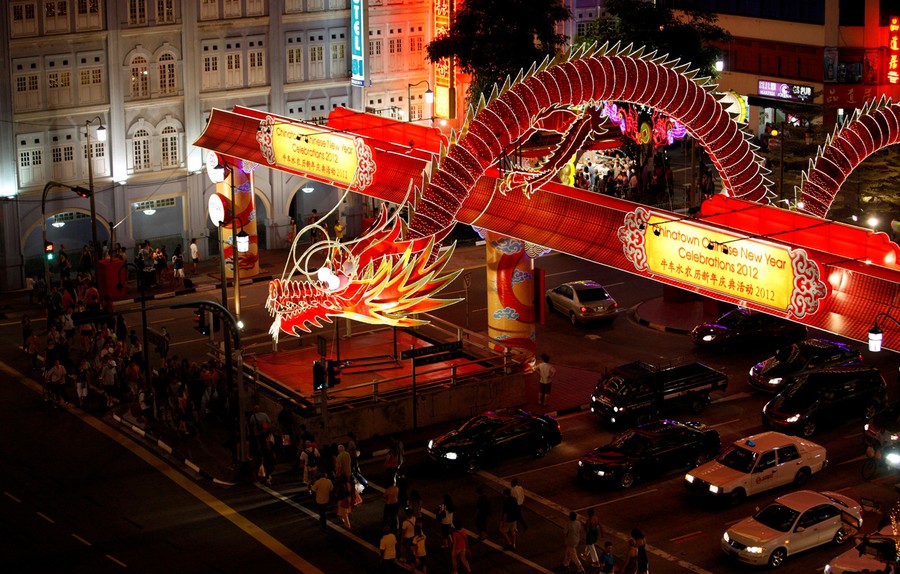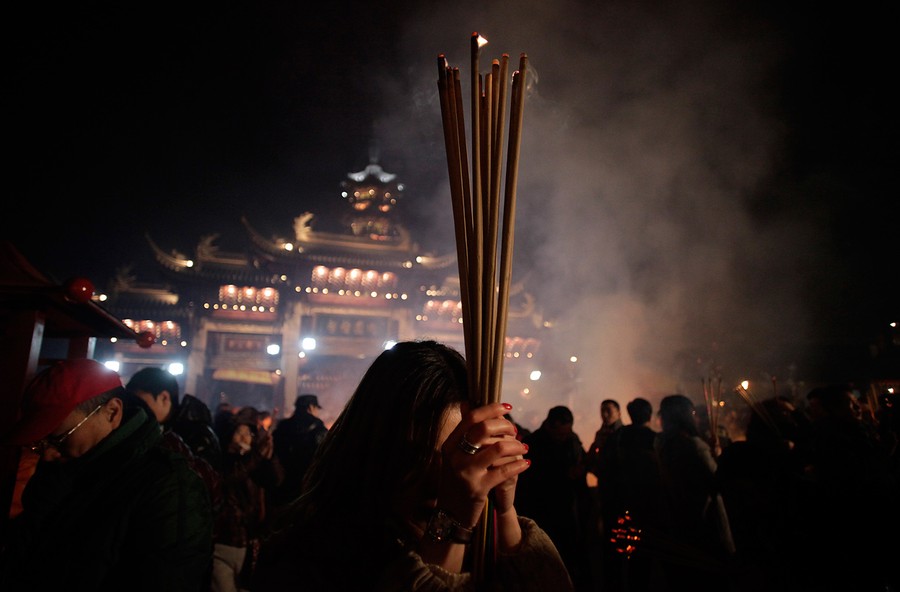 Today marks the start of the Chinese Lunar New Year 2012, the Year of the Dragon. One of the 12 animals of the Chinese zodiac, the dragon signifies good fortune and power. In the Chinese astrological cycle, this year is also associated with the element of water, which makes 2012 the Year of the Water Dragon -- an emblem of optimism and growth that comes around only once every 60 years. People around the world are ushering in this auspicious year with displays of fireworks, family get-togethers, temple visits, and street festivals. Collected below are images from several countries where revelers have been welcoming the arrival of the Water Dragon.