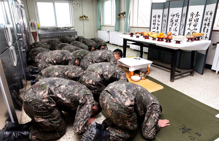 Read moreSouth Korean army soldiers bow to respect for their ancestors as they celebrate Lunar New Year at their base near the demilitarized zone (DMZ) that separates the two Koreas since the Korean War, in Cheorwon, South Korea, on January 23, 2012. #