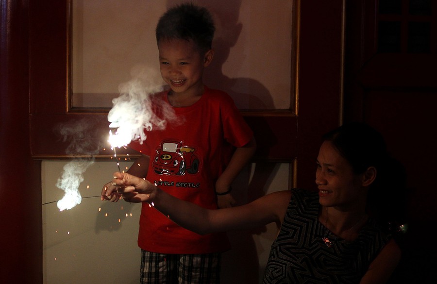 Read moreKelly Hoang and her son Scott Hoang play with sparklers outside a temple in Chinatown, on January 22, 2011 in Singapore. Thousands of people converged on Chinatown to usher in the Year of the Water Dragon. For the Chinese, The Year of the Water Dragon is said to bring abundance, and good fortune. #