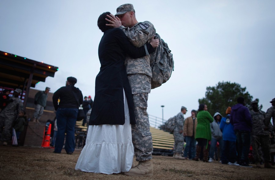 Read moreA soldier from the 3rd Brigade, 1st Cavalry Division kisses a family member during a homecoming ceremony at Fort Hood, Texas, on December 21, 2011. The 3rd Brigade, 1st Cavalry Division was the last U.S. military unit to depart Iraq. #