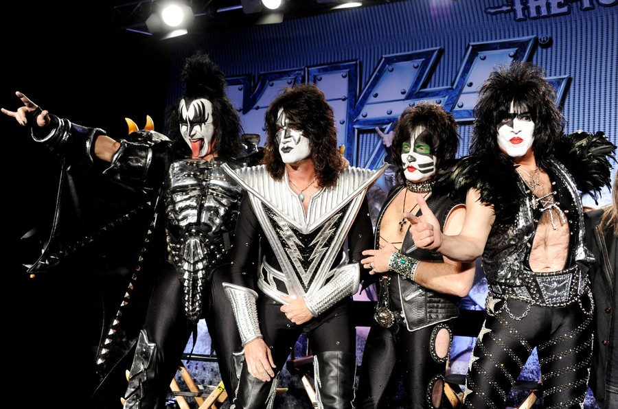 Read moreFrom left to right, the members of Kiss, Gene Simmons, Tommy Thayer, Eric Singer and Paul Stanley appear onstage, announcing "The Tour", an upcoming Motley Crüe / KISS co-headlining tour at the Hollywood Roosevelt Hotel, in Los Angeles, California, on March 20, 2012. #