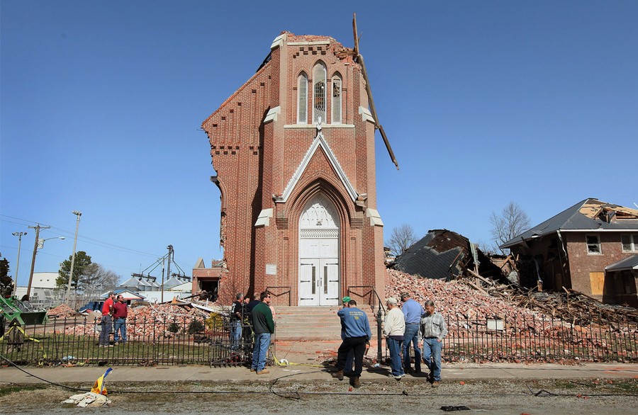 Read moreResidents look over the remains of St. Joseph's Catholic Church in Ridgeway, Illinois, on March 1, 2012. The 110-year-old church was completely destroyed after it was struck by a tornado early Tuesday morning. #