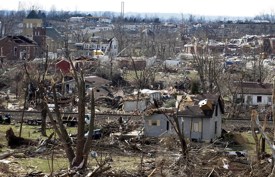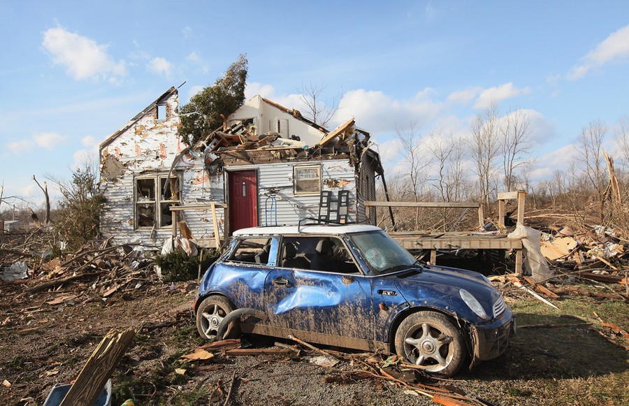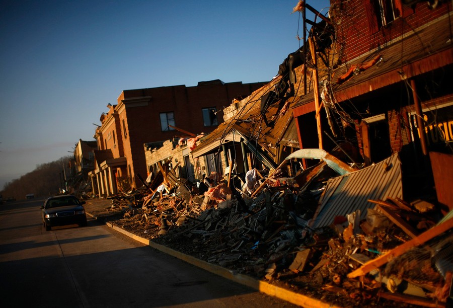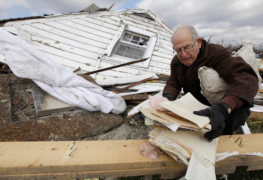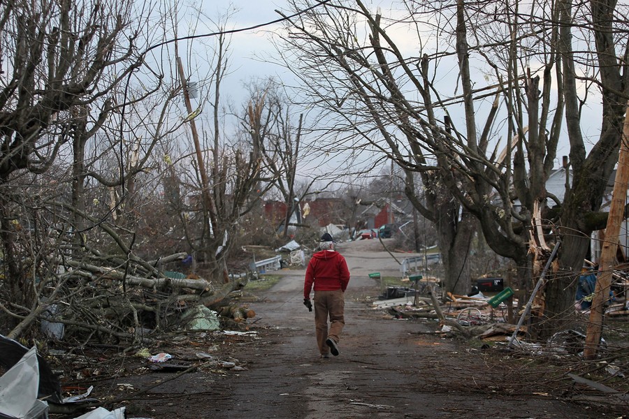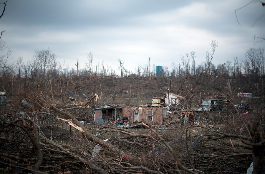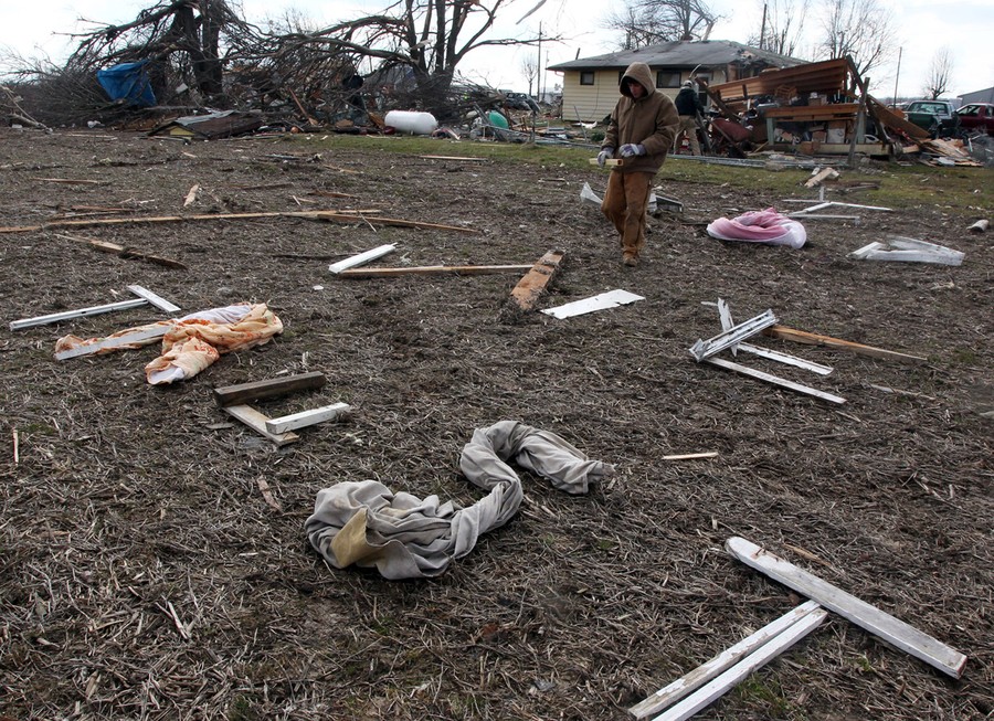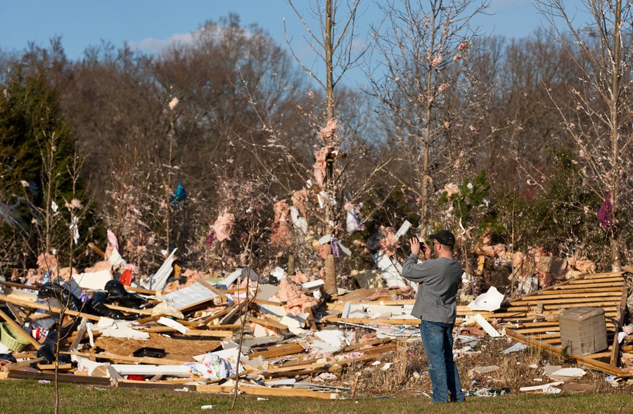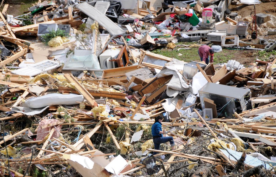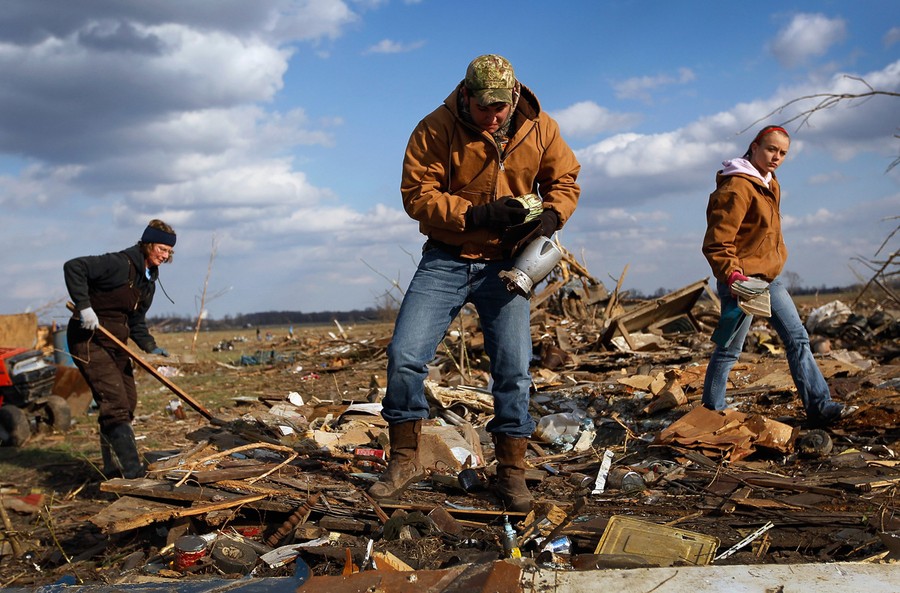 Over the course of five days last week, more than 150 tornadoes were reported across a dozen states. Belonging to two separate weather systems, they left enormous trails of wreckage strewn across the southern United States and Ohio River Valley and took the lives of 39 people. At least two of the tornadoes were given the severe rating of EF4, with sustained winds of between 267 and 322 kph (166 - 200 mph). Many residents have now returned to their damaged farms and neighborhoods to search for items that may have survived the storms, assess the damage, and plan their next steps. The images gathered here show the ferocity of these forces of nature and the fragility of even the strongest man-made structures.