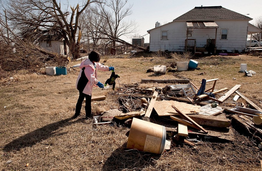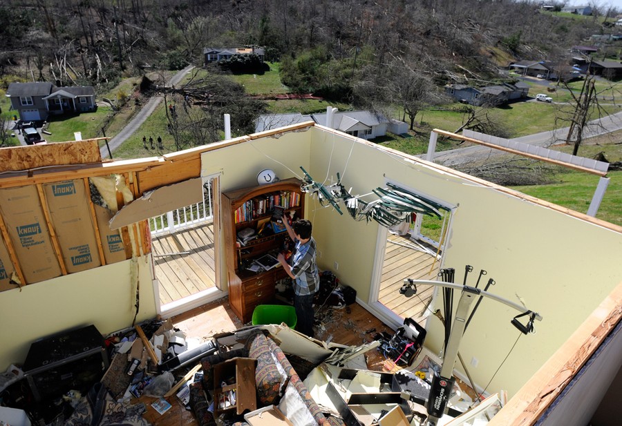 Read moreJustin Pace helps clean up the home of Gene and Tammy Humphrey in Harrison, Tennessee, on March 3, 2012. Emergency crews desperately searched for survivors Saturday after a violent wave of Midwest and Southern storms flattened some rural communities and left behind a trail of destruction: shredded homes, downed power lines and streets littered with tossed cars. #