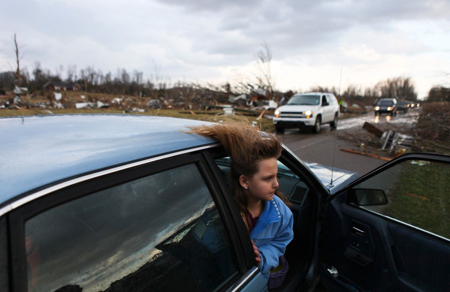Read moreJanessa Lewellyn, sitting in her father's car, looks back towards her grandparents' house after a tornado ripped it apart outside of New Pekin, Indiana, on March 2, 2012. #