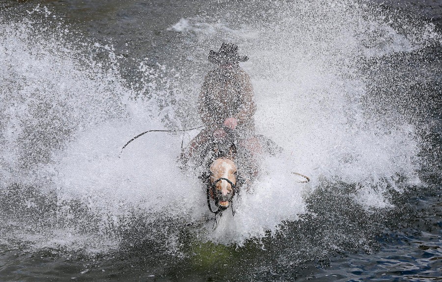 Read moreWrangler Shad Boardman rides his horse through a river on May 4, 2012. The drive is not without dangers -- over the years, a number of wranglers have suffered minor injuries, from head injuries to broken bones. #