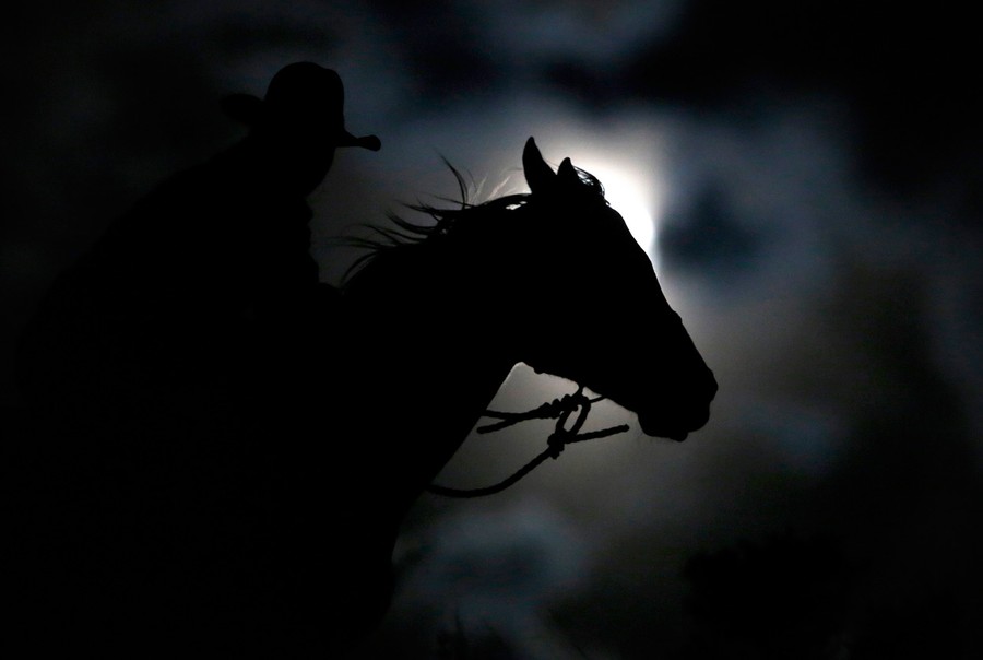 Read moreWrangler Nate Cummins takes the opportunity to ride by moonlight, the night before the "Super Moon" during Montana Horses' final horse drive outside Three Forks, Montana, on May 4, 2012. #