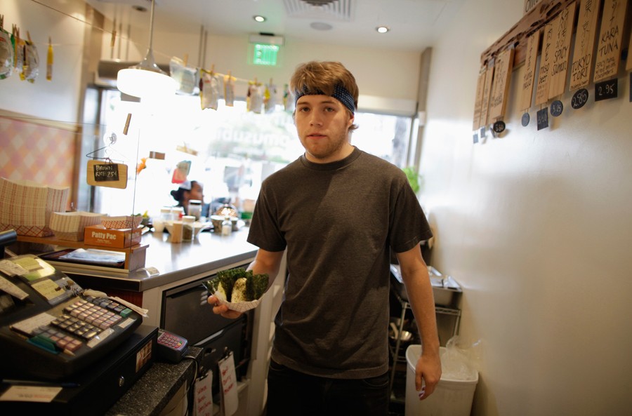 Read moreSteffen Andrews, a 24-year-old waiter, serves a customer at Sunny Blue restaurant in Santa Monica, California, on April 24, 2012. Andrews studied for four and a half years at Cabrillo College where he received a degree in communications. He came to Los Angeles to work in the film industry but is now unsure what career he wants to pursue. #