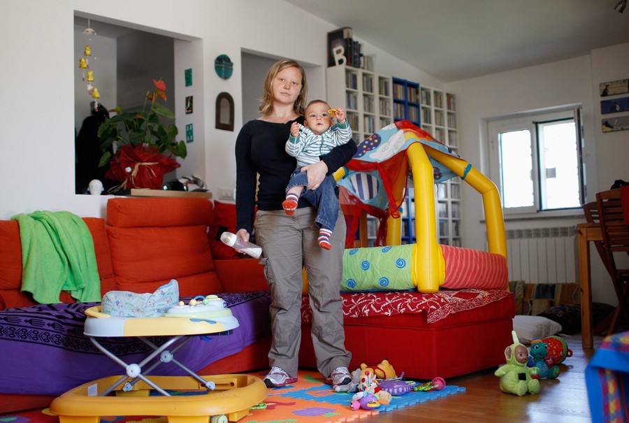 Read moreFrancesca Baldi, 32, as she cares for a seven-month-old baby in a private household in Rome, on May 11, 2012. Baldi studied for five years at university in Pisa where she received a degree and a doctorate in literature and philosophy. She hoped to find a job as a teacher but has been working in child care for five months. #