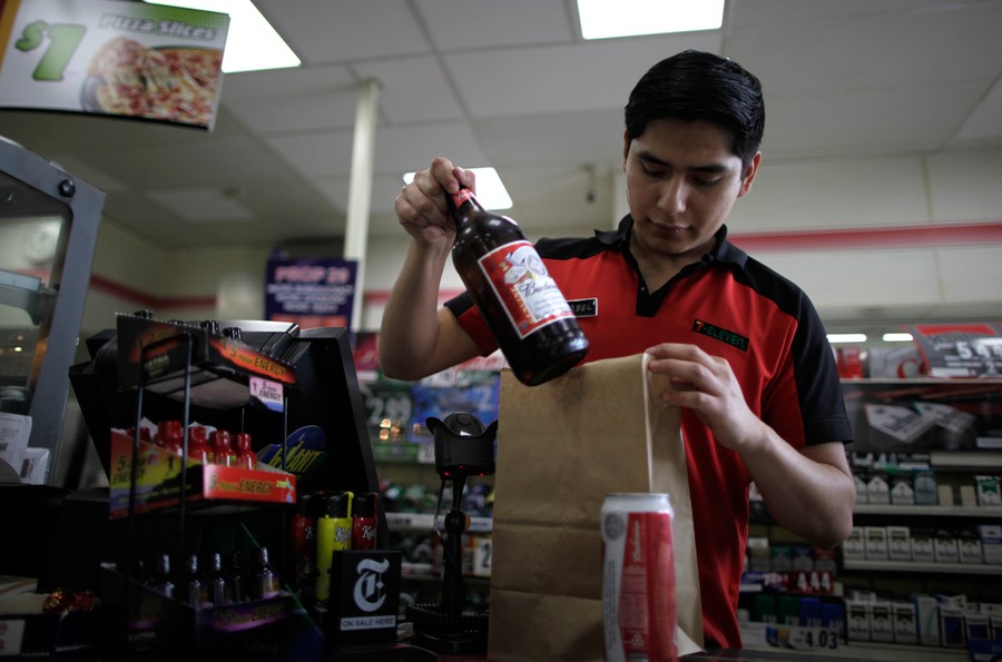 Read moreAbel Santiago, 21, serves a customer at a 7-Eleven convenience store in Santa Monica, California, on April 24, 2012. Santiago studied for one year at Universidad Anahuac Oaxaca for a degree in law. He has worked at the store for five months and hopes to return to Mexico to finish his degree. #
