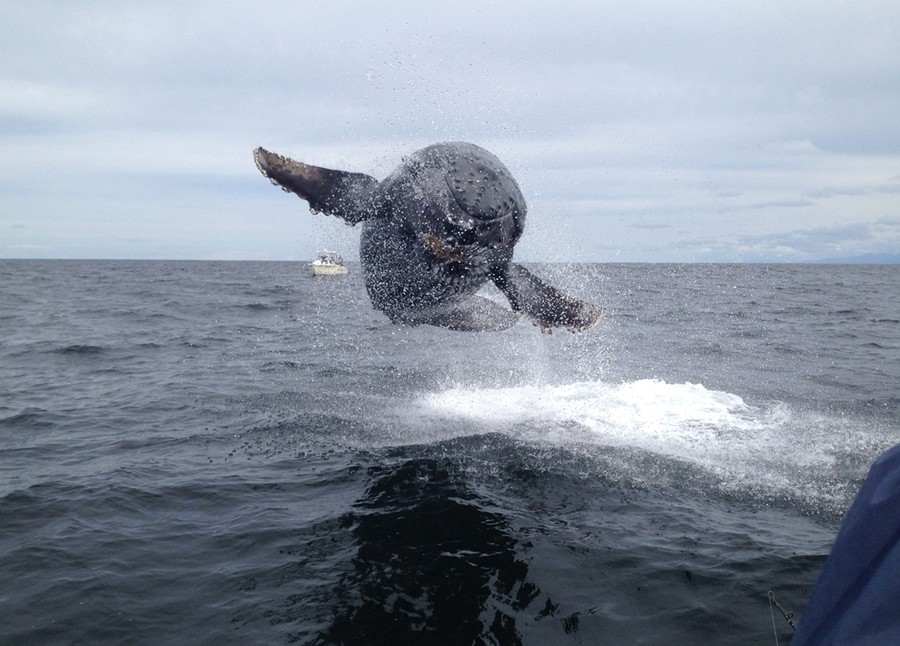 Read moreWhile working as a fishing guide in Tofino, British Columbia I had this humpback calf jump no more than 10 feet away from the boat. On our way in from fishing for halibut we noticed a few humpback whales playing in the distance and we stopped part way in to watch. It was quite an experience to see something completely airborne so close to the boat. The lucky thing was I got the photo I submitted. A fellow boat also got a picture of the whale close to mid air and it was also all caught on video. Was an amazing day. #