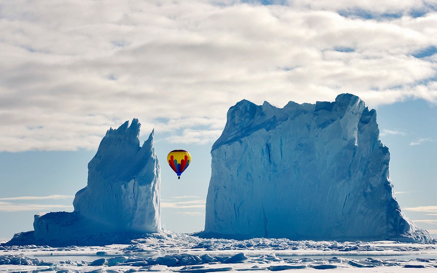 Read moreFly by: This photo was taken on the ice near Arctic Bay last month. As far as we know, it is the highest latitude passenger flight on a hot air balloon ever. It was quite the sight to see a hot air balloon fly between the iceberg columns -- it is one iceberg but looks like two. #